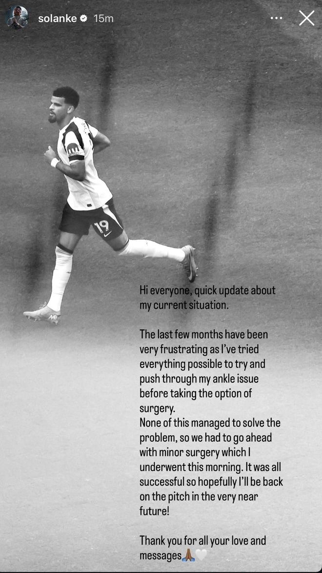 北京時間10月2日,熱刺前鋒索蘭克在社媒中自宣自己接受了腳踝手術,將傷停一段時間。