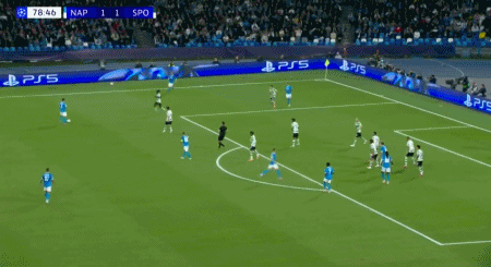 第36分鍾,德布勞內奔襲突破後送助攻,霍伊倫麵對門將冷靜單刀射穿小門得手,幫助那不勒斯打破僵局。在葡萄牙體育扳平比分,眼看那不勒斯即將開局2輪不勝後,霍伊倫再次拯救球隊。