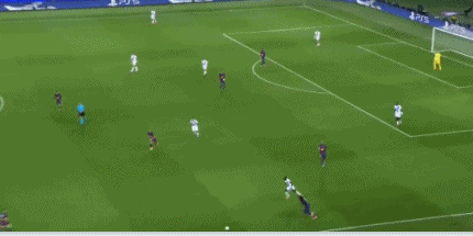 在本方後場左側,努諾-門德斯開始飆車,先用人球分過戲耍孔德。與隊友打出撞牆配合之後,努諾-門德斯繼續高速狂奔。巴薩後場一片空虛,努諾-門德斯將球傳給3秒之後的自己,用速度生吃奧爾莫、孔德、德容。